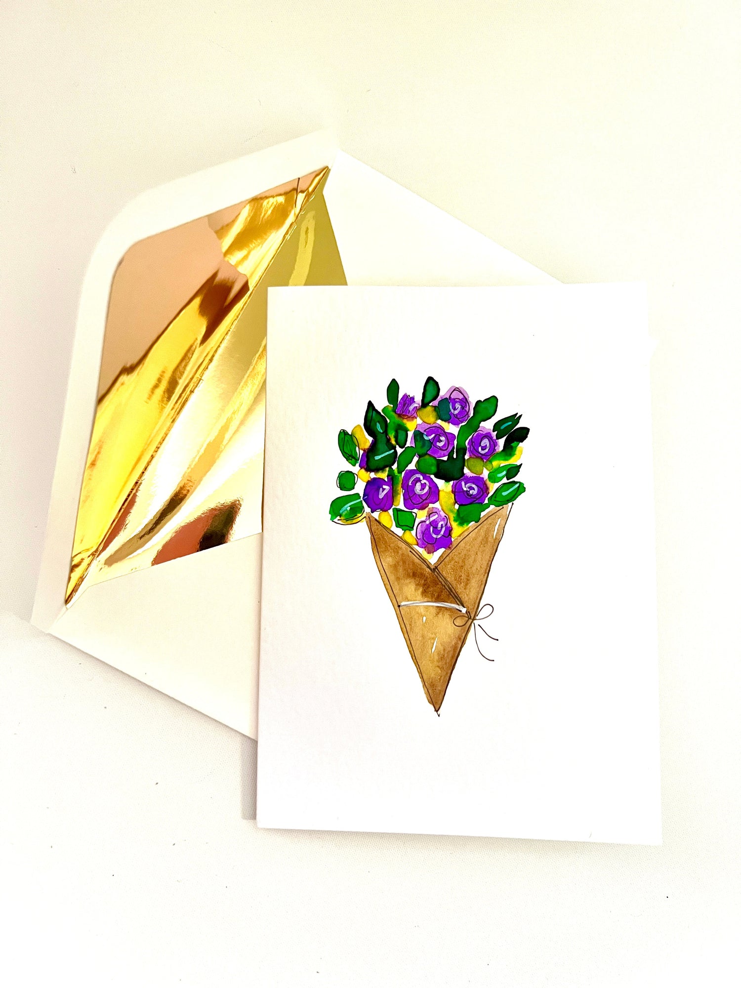 All hand-painted cards come with a luxurious Gold, silver or tissue paper...
