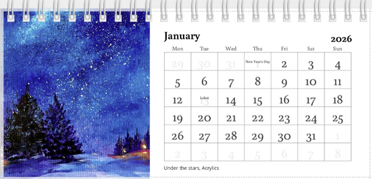 Desk Calendar 2026 | Original Art Desk Calendar | Oil & Watercolour Paintings | Artist Illustrated | Original Paintings | Important dates and festivals
