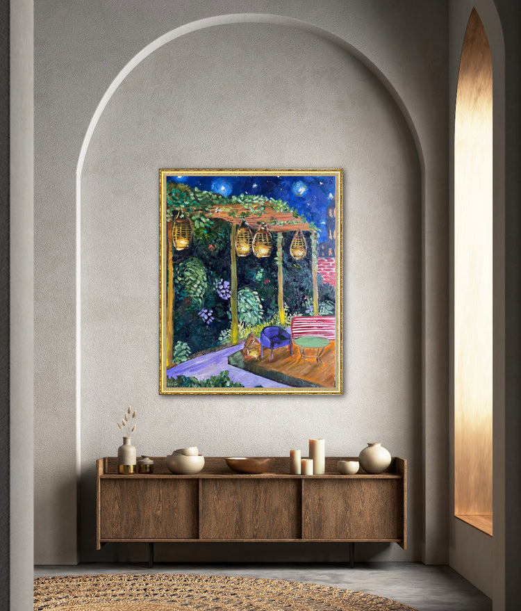 Original Print- Rainy evening Bike ride painting | Oil painting print