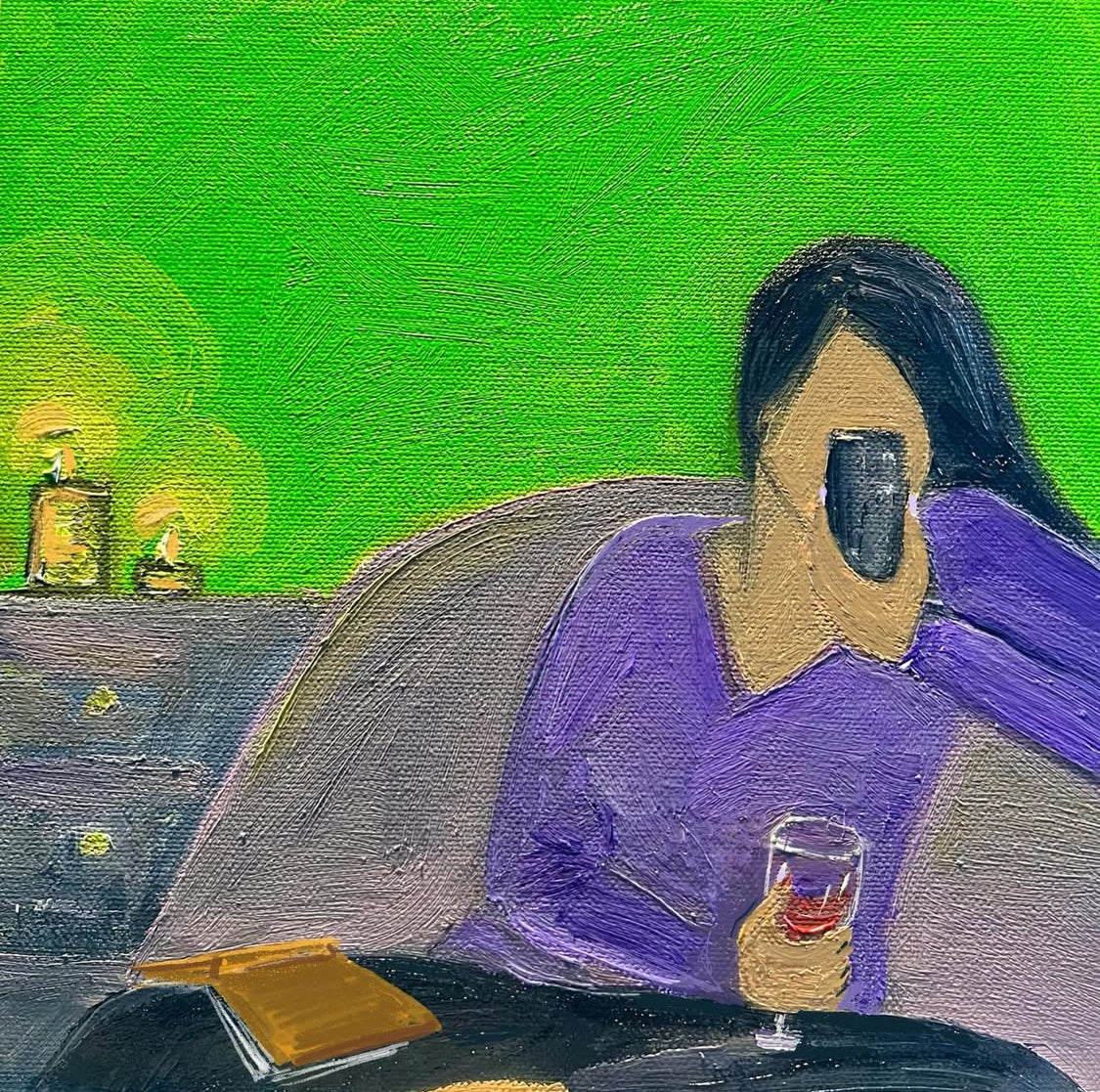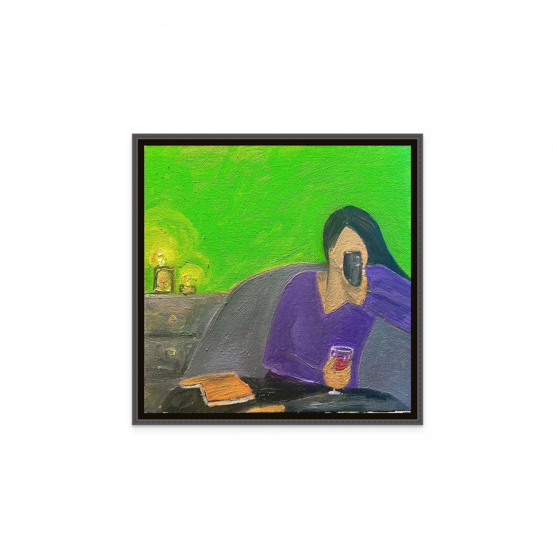 This charming and humorous piece captures the quiet strength of choosing solitude over social engagements. Through expressive brushwork and thoughtful composition, “Sorry, I’m Busy” reflects a woman’s inner world — serene, self-assured, and delightfully unapologetic.